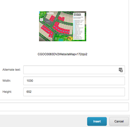 Navigate to the folder where the image is uploaded and select the image that you would like to insert into the page. Add in a description of the image within the “Alternate text” field and select insert.