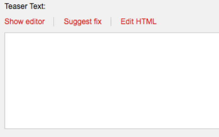 When the page is created, click “Show Editor” within the content text area.