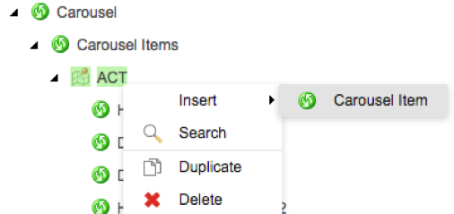 Expand the “Carousel” dropdown and navigate to ACT’s Carousel Items.