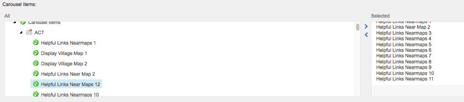 Then hit save and publish item from the publish tab within the ribbon above. Close the Carousel Items tab in the left hand Navigation and navigate to the Helpful Links Nearmaps within the Carousel Modules drop down.