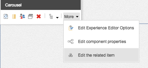 Click in the center of the module until you see a popup in top left hand corner, a popup will appear, here click the “more” dropdown and then edit the related item.