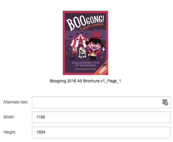 Navigate to the folder where the community newsletter was uploaded to and once found, click on the image. Make sure to write a description of the image inside the alternate text field. And click insert