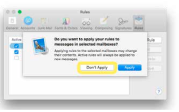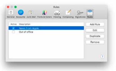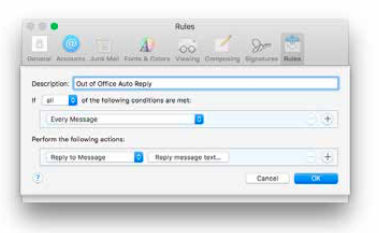 - Once your rule is created, it will be active by default. You can deactivate it by unchecking its box in the Mail > Preference > Rules. Once active, everyone who sends an email to your account will receive your automatic reply until you deactivate the rule upon your return.